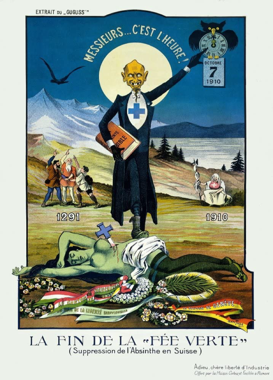 These questions get no less complex when one considers the actual political economy involved in the production and consumption of absinthe in France and Switzerland (where absinthe was invented in its modern spirituous form). The answer is that after nearly 75 years of interdiction, the modern drinking public has forgotten (or rather never knew) that these portrayals were derived from the prohibitionist imagery of alcoholism forwarded by disparate anti-spirit groups, like the Ligue nationale contre l’alcoolisme. Absinthe’s association with sexuality, femininity, and the greater-social threat of alcoholism has been largely separated from the socio-political and economic context in which their ancestors made the decision to prohibit the beverage in France and its colonies. Only in the last forty years has the substance received much popular attention—although only occasionally in English—which has perpetuated a discourse which exalts absinthe’s supposed psychoactive qualities and exceptional nature.