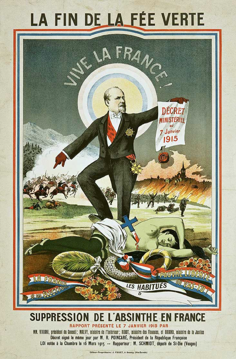 Absinthe was officially outlawed in France in January 1915, at the start of la Grande Guerre, almost a decade after the first legislative attempts to ban the beverage failed. Although various spirits have used the same ingredients and aspired to the same reputation as absinthe ever since, the original spirit has increasingly captivated historians and the public imagination. This sentiment is reflected in the literature, which has focused on the production, consumption, and artistic representation of the beverage, offering an interpretation of the 1915 interdiction as a fait accompli and the conclusion of a problematic history of alcoholism that was exacerbated by absinthe’s ontological exceptionalism. Few studies have offered a critical analysis of the absinthe ban as a unique prohibition effort that recycled and reified extant racial, sexual, moralist, and classist discourses surrounding alcoholism in a distinct, secular manner.