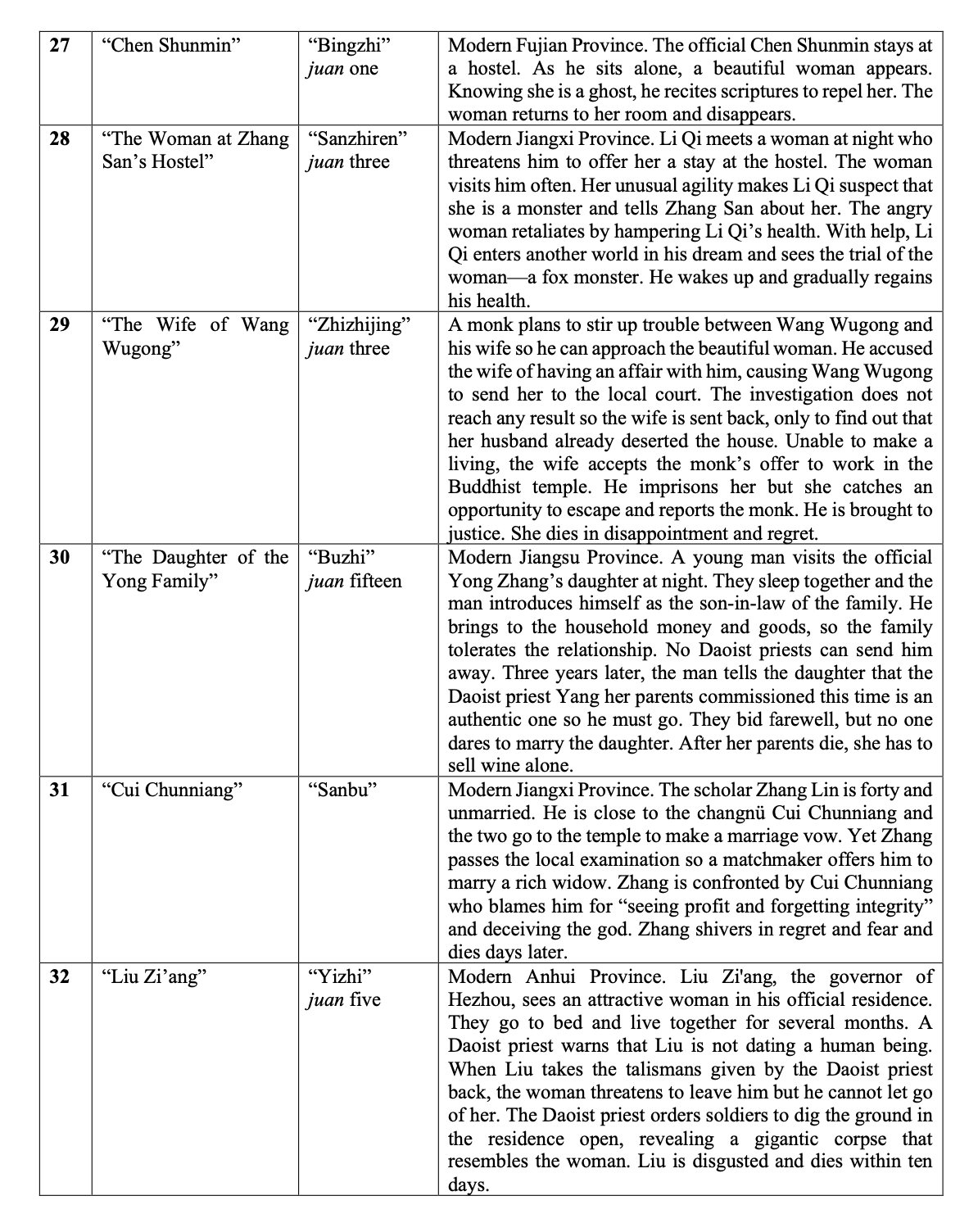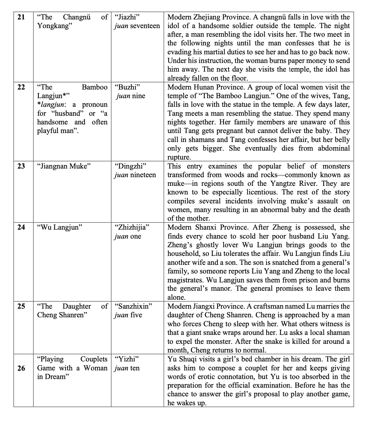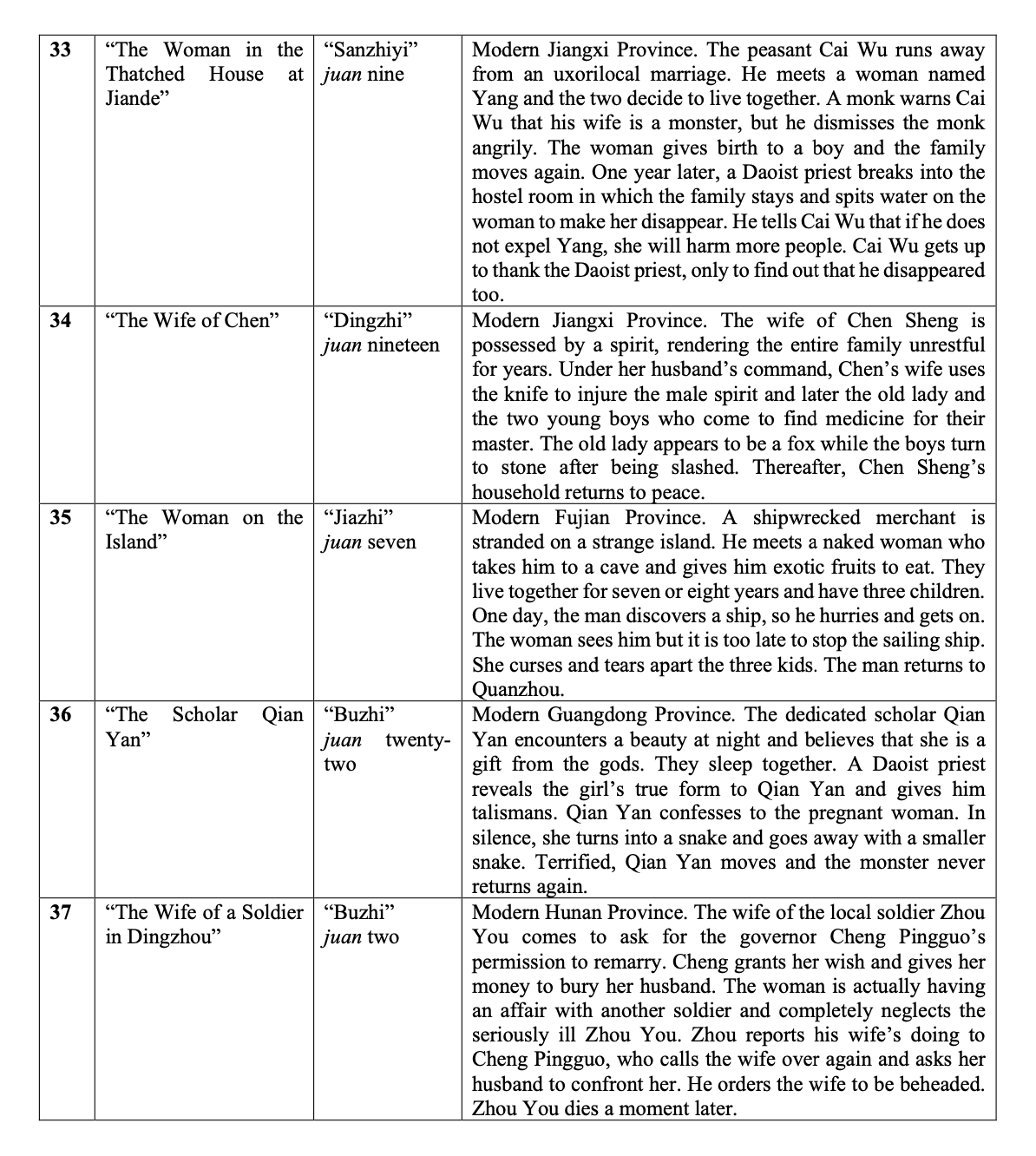 Synopses of Selected Stories from ‘Yijian zhi’